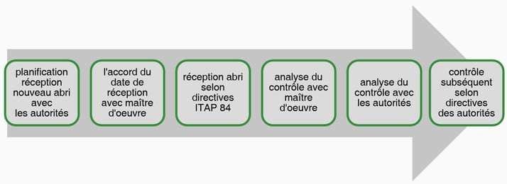 Pour la réception, l'abri tout entier, y compris les murs, les plafonds, la ventilation, les volets, etc. doit être accessible.